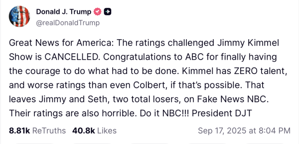 Kimmel made a joke about Trump; Trump didn’t like it. Suddenly, the FCC is all over ABC. This is textbook government manipulation of the media on a magnitude I’ve never seen in the US.